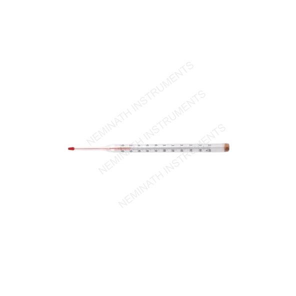 Product Description : Glass liquid-in-glass thermometer filled with dyed alcohol (ethanol/spirit). Designed for safe and accurate temperature measurement in laboratory and dairy applications.