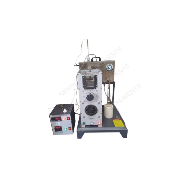 Description :- Petroleum Distillation apparatus(non-refrigerated) is used to perform atmospheric distillation of petroleum products using Laboratory batch distillation to determine IBP(Initial boiling point) and FBP(Final Boiling point) of petroleum products. It has temp from ambient up to 400°C.The heater is controlled through Voltage Variac to maintain heating rate of sample. 125ml distillation flask is mounted on asbestos board and its height can be adjusted through jack provided. The condenser tank is made of S.S 304 and mounted on a M.S. powder coated frame. Digital Indicator is provided to measure the specimen vapour temp. and thermometer arrangement is provided to measure temp. of condenser tank. 100ml measuring cylinder with base support is placed to collect the output.